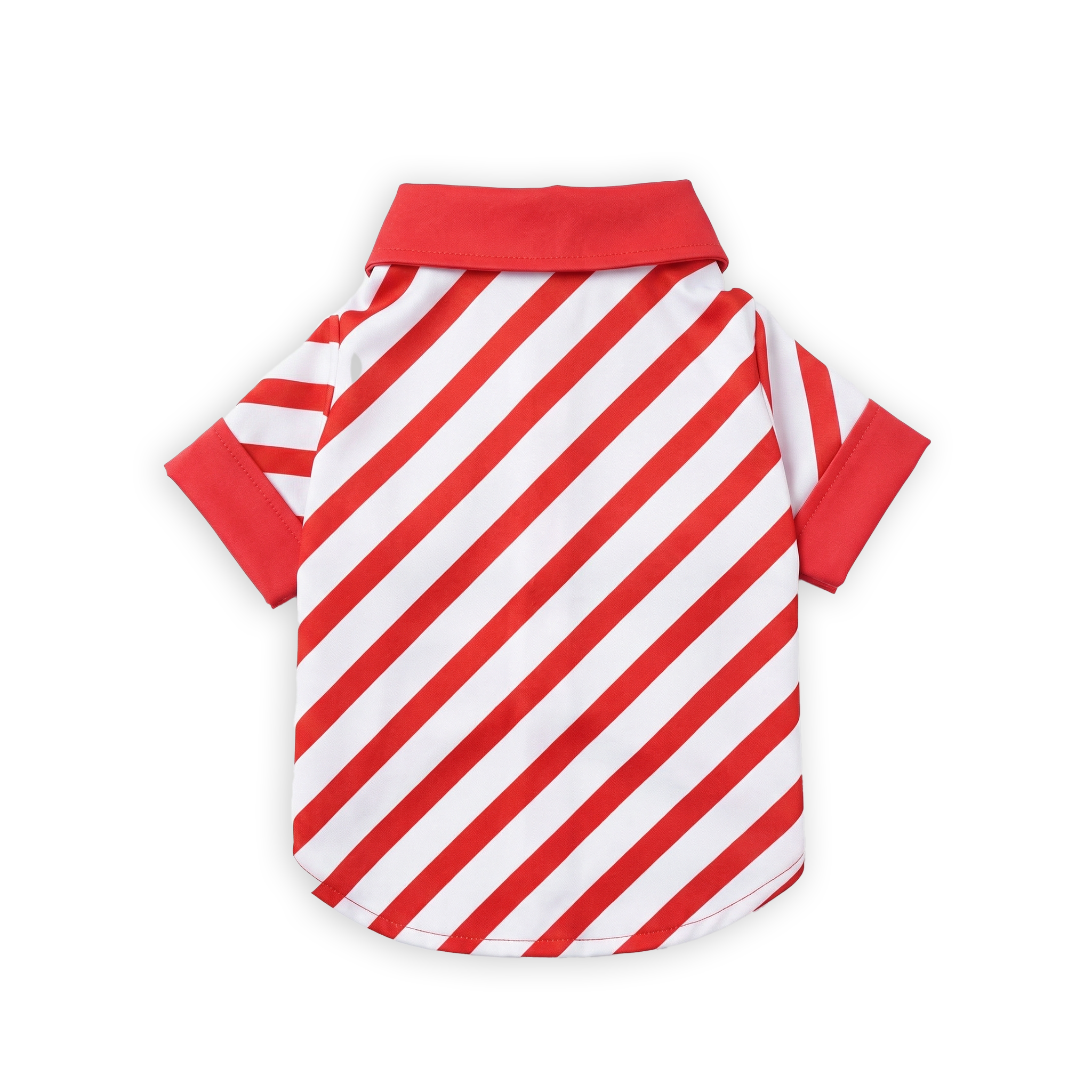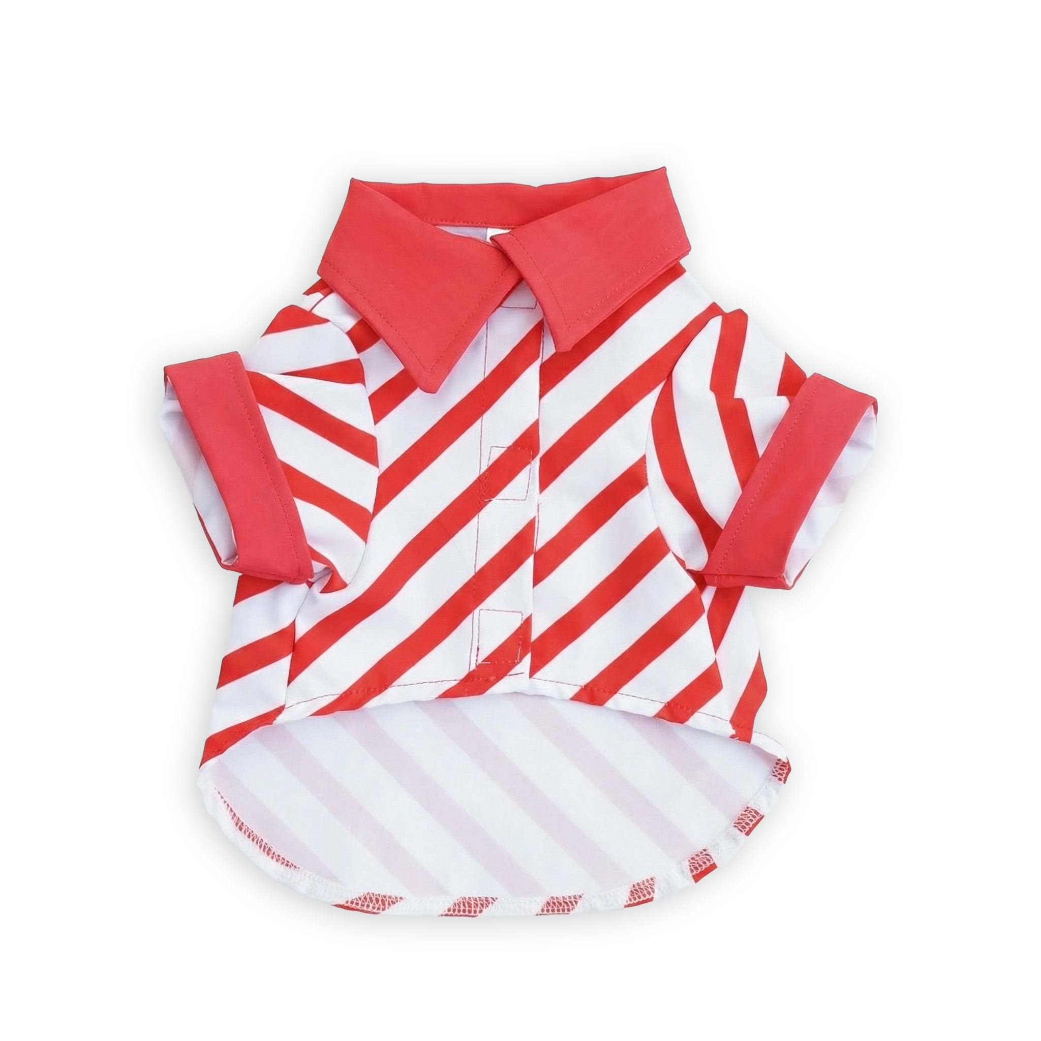 La Camisa Peppermint es el clásico navideño que nunca falla ❤️🤍. Con rayas tipo candy cane en rojo y blanco, cuello camisero y puños rojos, tu perrito queda listo para brillar en cenas, fotos familiares y paseos de diciembre.