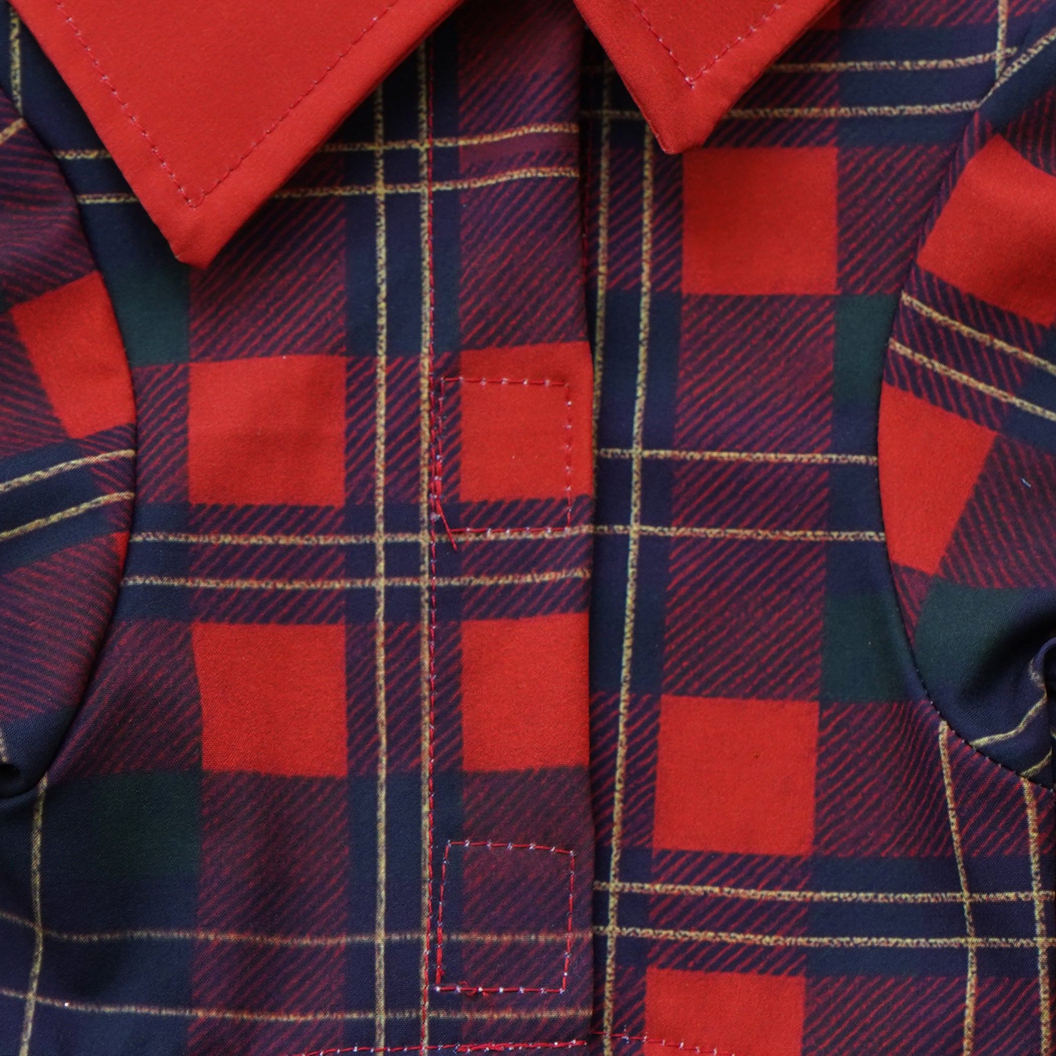 La Camisa Tartán es el look más elegante de la temporada 🎄✨. Su diseño de cuadros tartán en tonos rojo, verde y azul con líneas doradas, combinado con cuello y puños rojos, crea un estilo clásico tipo “navidad sofisticada” que queda perfecto para reuniones familiares, fotos y paseos.