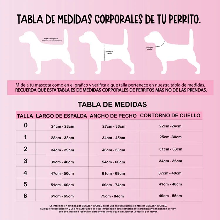 Disponible en tallas 0 a 4 (elige según las medidas de tu perrito).