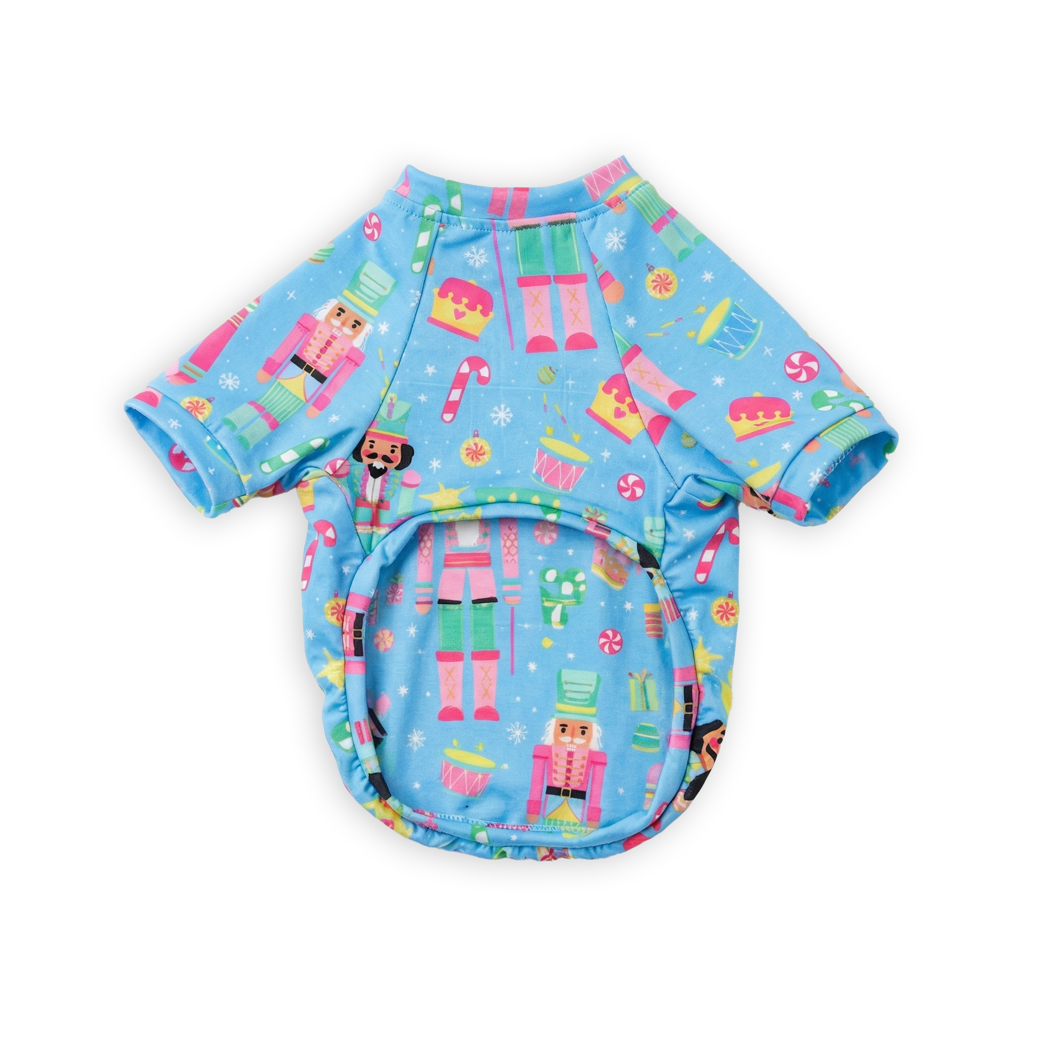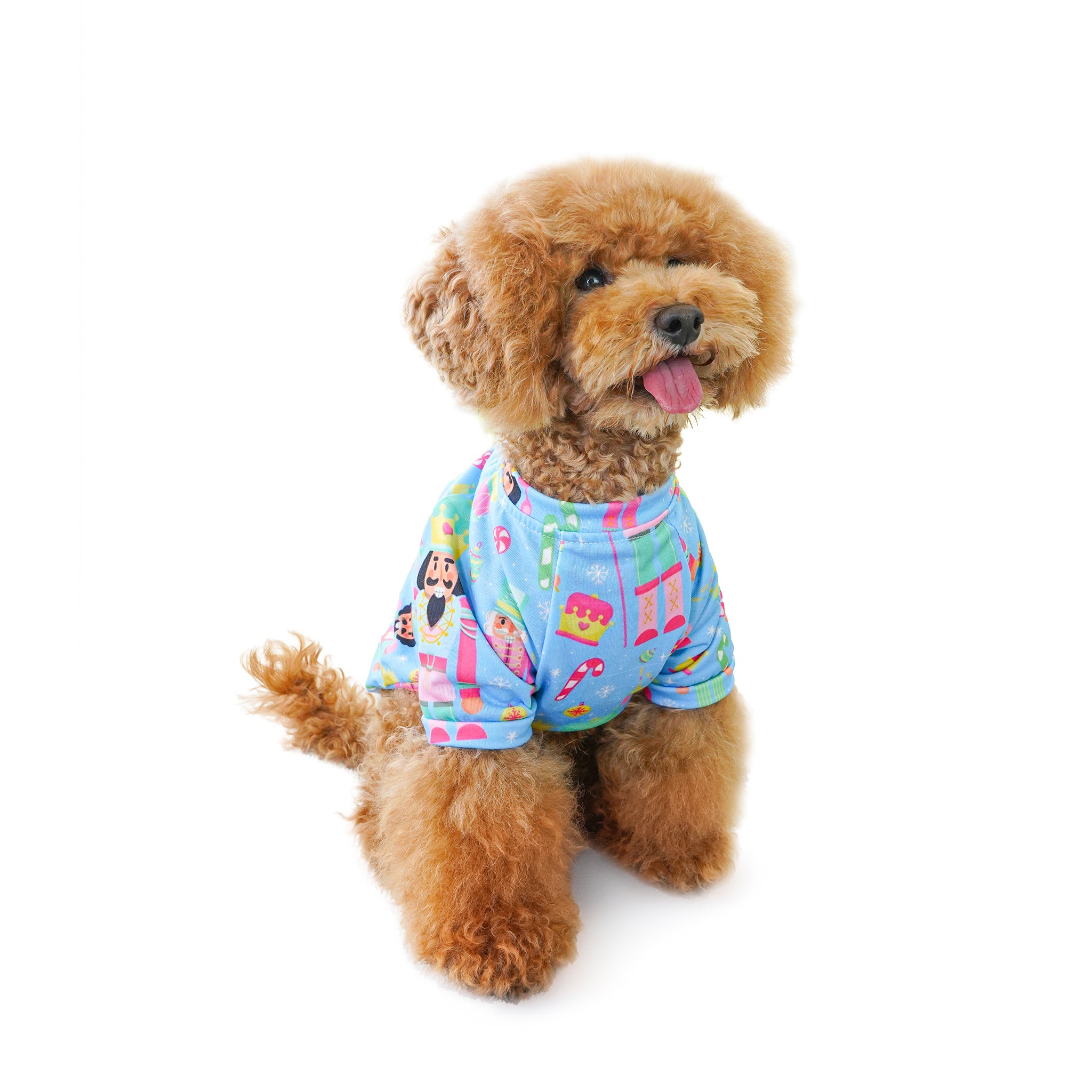 El Polo Cascanueces es Navidad en modo divertido y full color 💙✨. Con fondo celeste y un print de cascanueces, dulces, bastones de caramelo, tambores y detalles festivos, es el outfit ideal para que tu perrito destaque en cada foto, paseo o intercambio navideño.