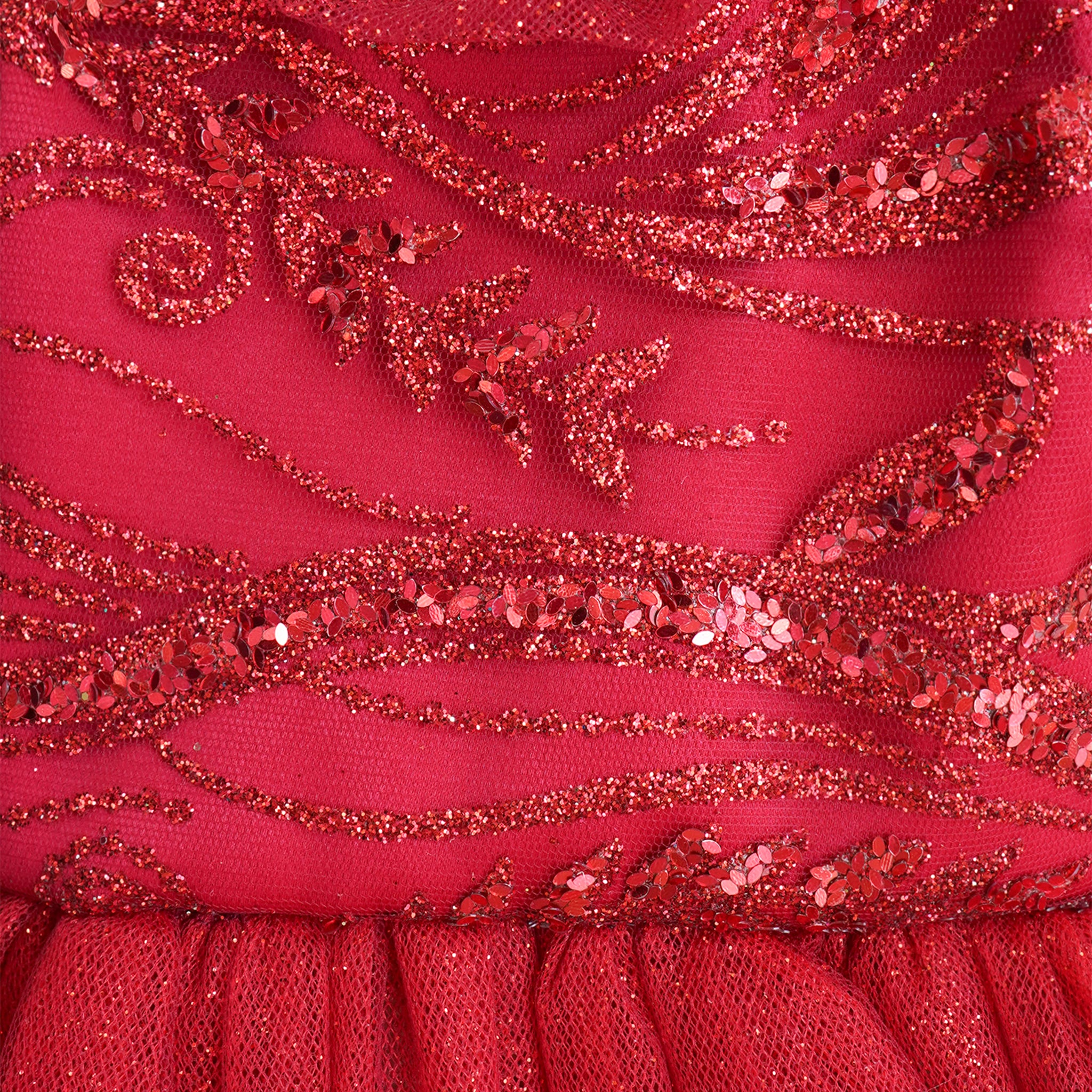 Vestido rojo con detalle brillante en la parte superior.